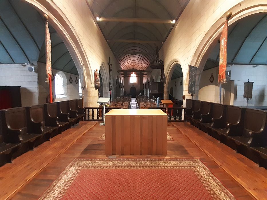 L'église en totalité et son enclos, à savoir ses deux calvaires, ses murs de clôture ouverts de cinq échaliers et son terrain d'assiette (cad. C 40, 41) : classement par arrêté du 14 décembre 2010
