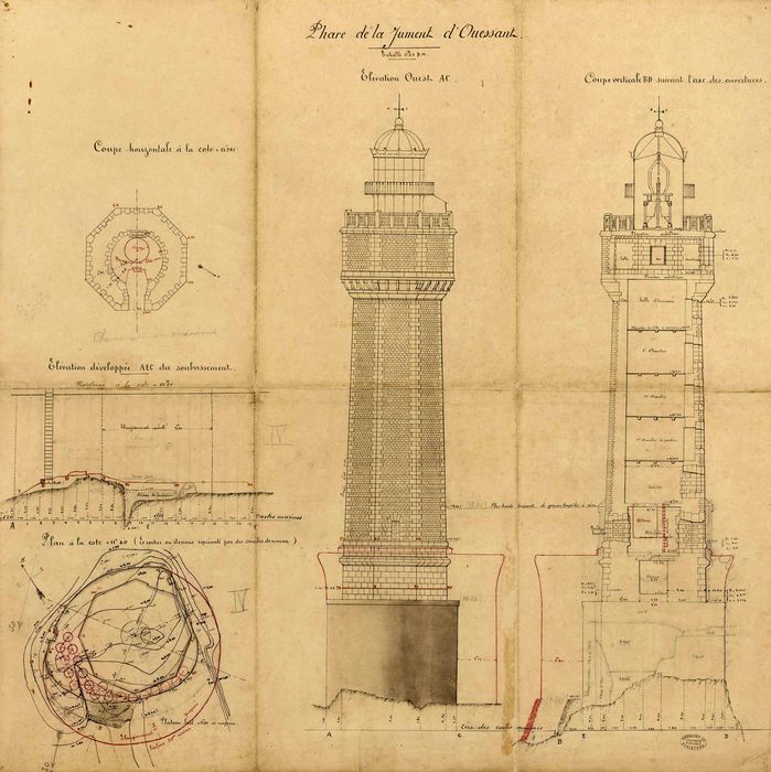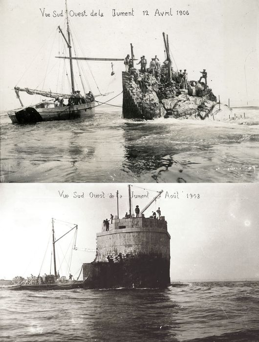 Inscrit MH le 31 décembre 2015. Le phare de la Jument, en totalité, y compris son soubassement, situé en mer d'Iroise sur la roche Ar-Gazec, à l'entrée du passage du Fromveur, au sud-ouest de l'île d'Ouessant (Finistère), sur le domaine public maritime non cadastré, coordonnées géographiques : 48°25'331'' N 05°08'033'' W : classement par arrêté du 20 avril 2017