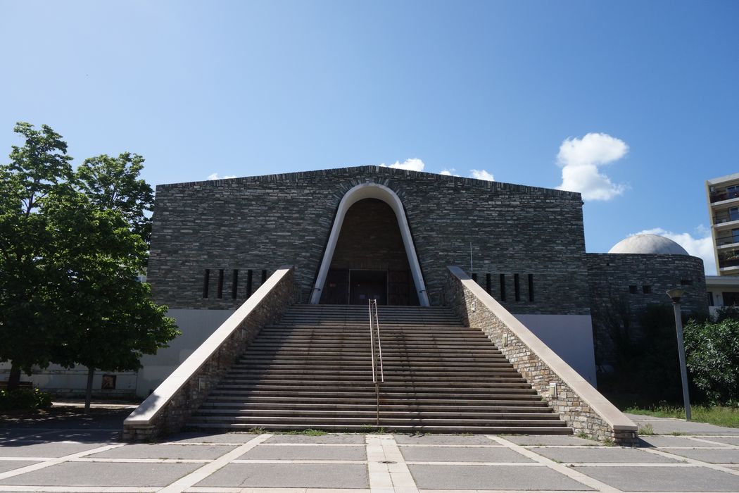 D'un point de vue formel, l'architecte recourt au répertoire des formes alors en pleine vogue, celles des paraboloïdes hyperboliques, symboles de progrès technique et de modernité. Ces silhouettes et ces surfaces ont l'avantage de contraster clairement avec les tours et les barres environnantes et de donner une identité forte au lieu de culte.