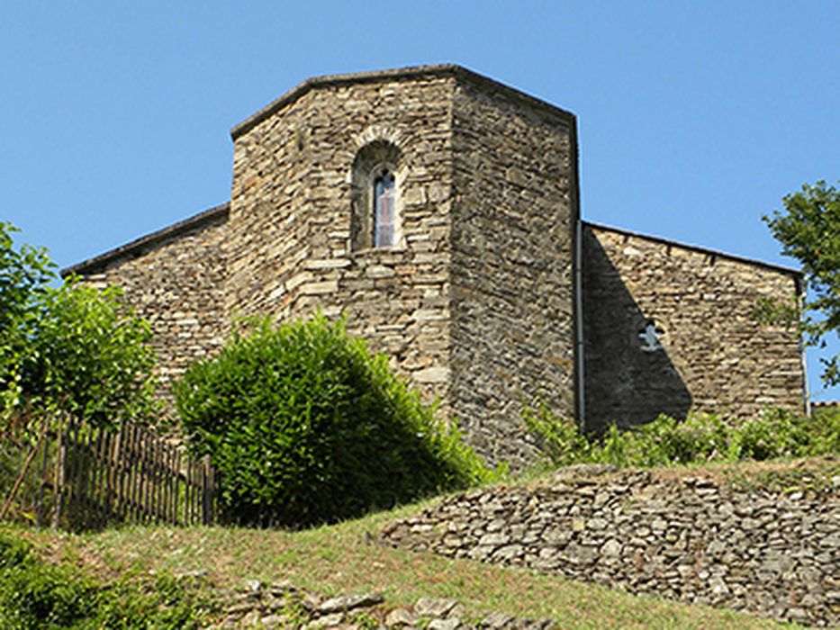 L'église est citée en 1345 mais en 1197, l'hommage du seigneur de Bussas précise que la seigneurie dépend de la paroisse de Saint-Martin. Le toponyme témoigne d'une implantation ancienne et la situation isolée de l'église. La construction actuelle fait apparaître deux phases : une première construction romane ou pré-romane dont il reste la façade, la porte d'entrée bouchée, le mur nord et la première travée voûtée en berceau et supportant un clocher carré. Le choeur a totalement disparu lors de la reprise du 14e siècle. A cette époque, l'édifice est agrandi avec la construction d'une nef parallèle à première, avec un nouveau portail plein cintre, un grand choeur et deux chapelles formant transept. La construction est en schiste. Le portail et les encadrements des baies sont en pierre taillée de grès clair. Les baies présentent des remplages trilobés. Au-dessus de la voûte cintrée se trouvent quelques assises romanes de ce qui devait être un clocher. L'escalier d'accès est tardif et le clocher en arceau signalé en 1723 a disparu. L'intérieur est entièrement voûté d'arêtes. Le choeur à pans coupés présente une voûte pentagonale, ce qui est un exemple assez rare dans la région.