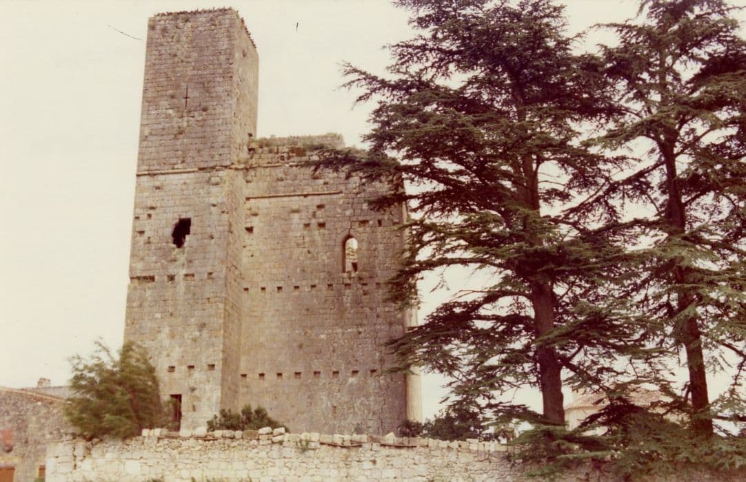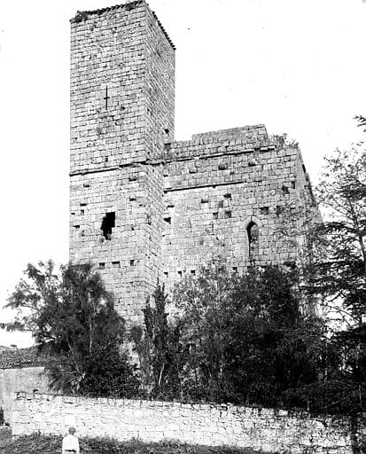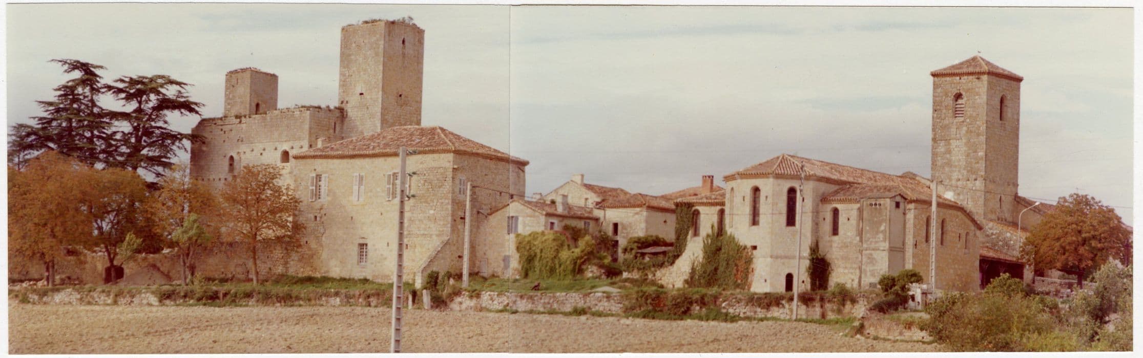 Château bâti à l'époque du traité d'Amiens (1279) par l'évêque de Lectoure, Géraud de Monlezun. Il défendait la frontière des possessions anglaises. Le château possède un corps principal rectangulaire, sur lequel se greffent deux tours, alignées sur la façade sud. Le rez-de-chaussée est clos de tous les côtés, hormis d'étroites meurtrières. Il servait de magasin d'approvisionnement. Le premier étage devait servir de dortoir à la garnison ou aux serviteurs de l'évêque. Le deuxième étage servait de chambre à coucher, de salon, de salle à manger au chef de la troupe ou à l'évêque. La fenêtre à meneaux croisés percée au 15e siècle dans la façade nord, est la seule modification apportée à l'édifice d'origine.