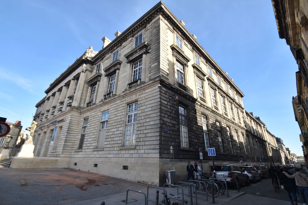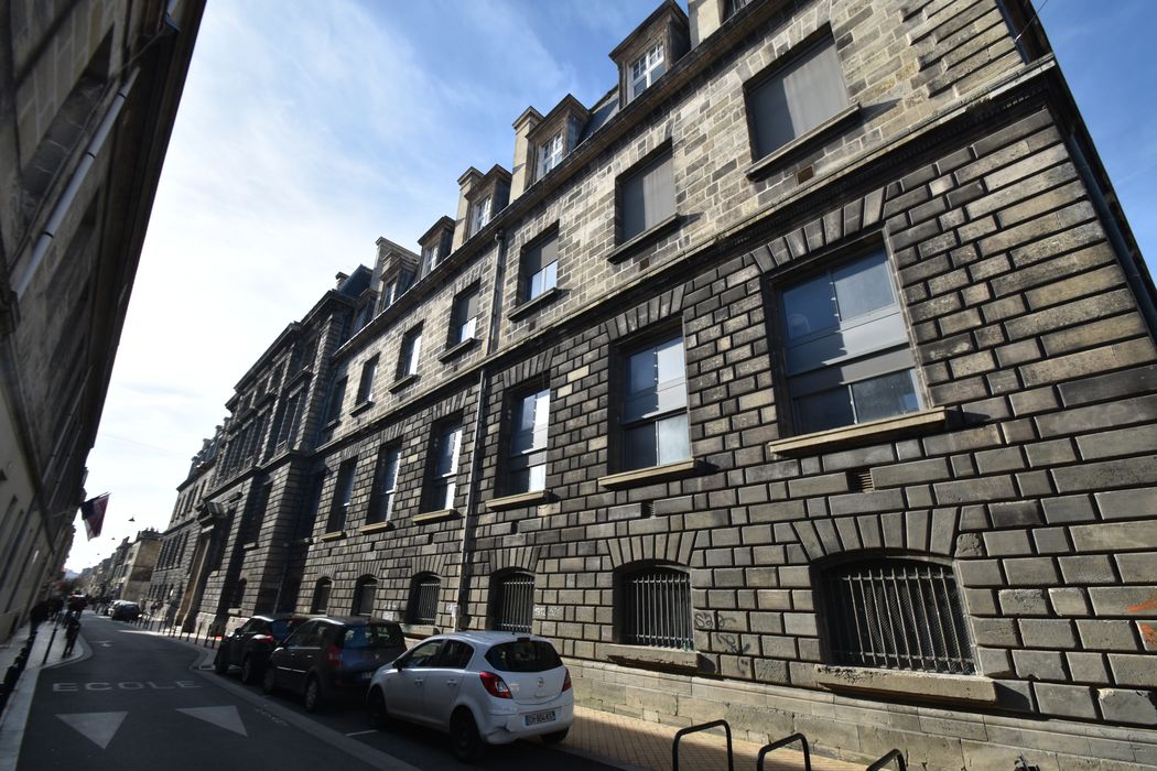 Lorsque Jean-Louis Pascal remporte en 1876 le concours pour la construction de la faculté de médecine et de pharmacie de Bordeaux, c'est déjà un architecte reconnu, qui vient d'être nommé architecte de la Bibliothèque nationale à Paris. Les travaux commencent en 1880, et voient l'édification d'un monument au plan typiquement « Beaux-arts » mais rationnel, qui tient compte des nouvelles découvertes de la médecine et intègre les matériaux modernes du XIXe siècle. L'austérité du bâtiment est aussi due aux contraintes budgétaires qui s'imposèrent à l'architecte, l'obligeant même à remanier son plan, amputé du grand amphithéâtre que celui-ci souhaitait pour une grande faculté. Son extension destinée à la faculté de pharmacie, réalisée au début du XXe siècle après la première guerre mondiale, proposera une façade légèrement surannée, achevée après la mort de Jean-Louis Pascal. Voir Anne Richard-Bazire, « La faculté de médecine et de pharmacie de Bordeaux par Jean-Louis Pascal (1876-1888 et 1902-1922) », Livraisons de l'histoire de l'architecture (En ligne), 13, 2007.