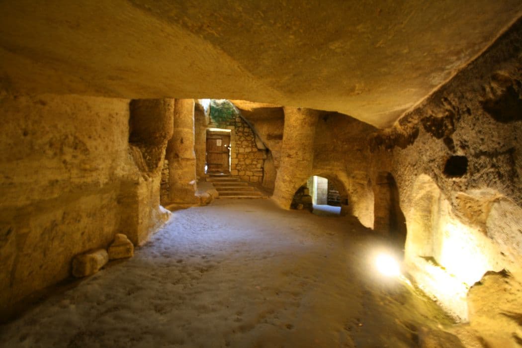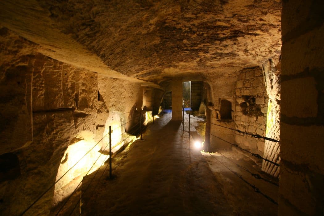 L’ensemble constituant le site actuel des catacombes de Saint-Émilion est formé de deux ensembles reliés tardivement. Tout d’abord, une galerie située à l’Ouest du site actuel et constituant un vestige d’un ancien sanctuaire pouvant dater de la même époque que l’ermitage de Saint Émilion. Ensuite, un ensemble daté des environs de 1100 et contemporain de la réalisation de l’église monolithe. L’ensemble a pu être commandité par le vicomte Pierre Ier de Castillon à son retour des Croisades, ce qui expliquerait les analogies de certains éléments avec le Saint-Sépulcre de Jérusalem. Cette construction du vicomte comporte, outre l’église monolithe, la rotonde qui constituait l’ancienne sortie des catacombes, et la galerie Nord les reliant à l’église monolithe. C’est à partir du XIIème siècle que des enfeus auraient été aménagés dans les galeries Nord et Sud. Enfin, une salle a été aménagée à l’extrémité Ouest du site à partir de l’époque moderne.