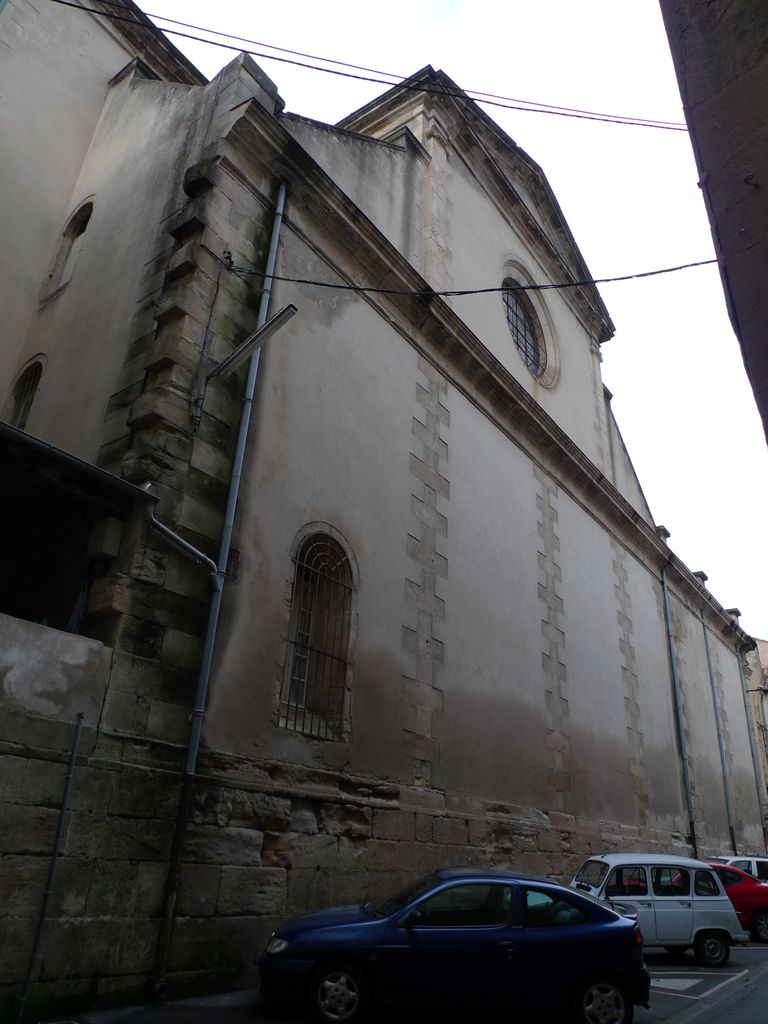 Cette église, élevée au 19ème siècle, se compose dune nef unique de trois travées, accostée de chapelles latérales communicantes voûtées sur croisées darêtes. Elle est éclairée par des fenêtres hautes à vitraux géométriques et par un oculus, au nord. La croisée du transept est couverte dune coupole appareillée en pierre de taille, surmontée dun lanternon. Lédifice est bâti en moellons enduits, à lexception de la façade et des chaînages en pierre de taille.