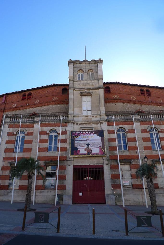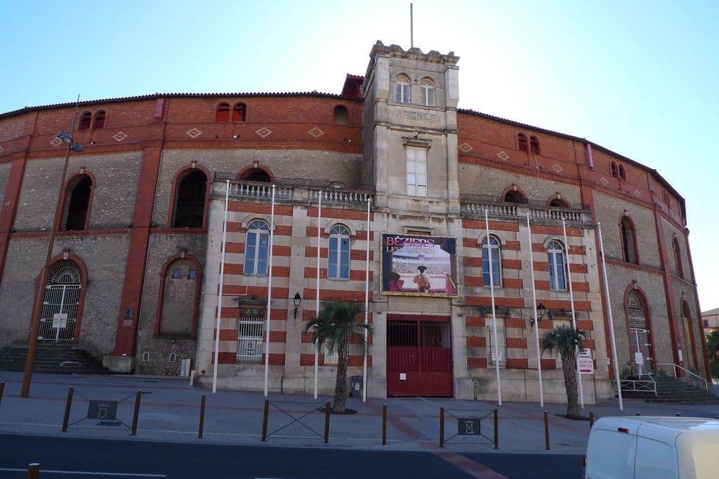 Situées sur les hauteurs, à lest de la ville, les arènes ont été construites dès 1897 pour sachever en 1901 sur les plans des architectes Carlier, père et fils. Mêlant briques, pierres de taille et ciment armé, elles constituent une solution de transition avec le tout béton armé de larchitecture moderne. Elles témoignent également de la période brillante qua connu la ville de béziers qui sest traduite par des réalisations architecturales prestigieuses et semblent tenir un rôle prépondérant dans lhistoire de la construction des édifices destinés à abriter les activités tauromachiques, introduites dans le sud de la France au 19e siècle. La double utilisation de ces arènes retiennent également lattention puisquelles accueillirent de grandes manifestations lyriques, en particulier la création de « Déjanire », en 1898, sous la baguette de son créateur Camille Saint-Saëns.