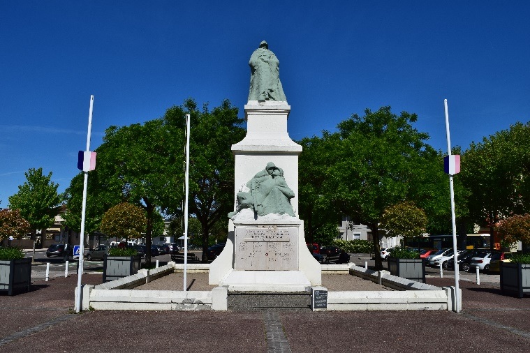 Le monument se situe sur l'esplanade du Champ de Mars, en lisière de la ville ancienne. Face à la place est figurée sur la partie inférieure du piédestal La Mère douloureuse ou Le Dernier baiser, laïcisant l'iconographie des Vierge de Pitié, le Poilu remplaçant le Christ. Le monument est surmonté d'une figure de poilu drapé dans sa capote et reconnaissable à son casque. Au revers est figurée, casquée et tenant un glaive, La Mère pacifique et vigilante ou La Paix armée. Des cartes postales éditées à la suite de l'inauguration en 1921 permettent de voir comment était le relief à l'origine et le modelé aujourd'hui perdu. Le monument a en effet subi une première restauration au ciment de dentiste en 1958 et également reçu une polychromie inexistante à l'origine, tout comme à Aix-les-Bains. La maquette est conservée à la maison du patrimoine mais a été badigeonnée. Le poilu et la mère douloureuse sont également présents sur le monument de Nogent.