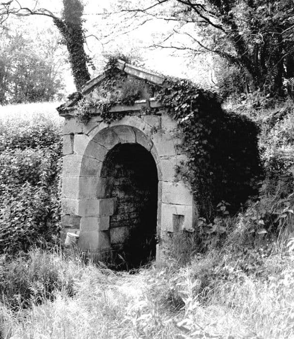 La grande fontaine se situait à distance du village, sur le versant sud, avec l'abreuvoir pour le bétail, et un lavoir. Il ne subsiste plus que l'édicule de la fontaine du 18e siècle, et des vestiges de bassins. L'édicule, engagé dans le versant, comporte une chambre de source carrée, voûtée en berceau. Sa façade en pierre de taille est formée par un arc en plein cintre à large voussure en cavet, surmonté par un fronton.