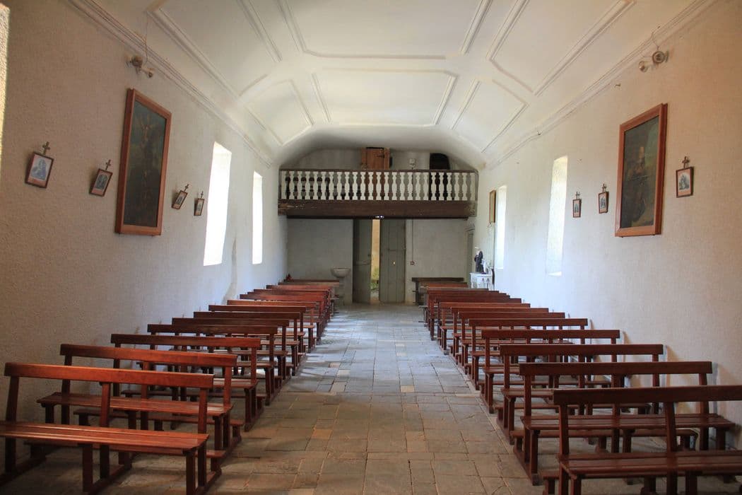 Elle se dresse dans un enclos paroissial accessible depuis un avant-porche ouvert à l'Ouest. Elle comporte un vaisseau unique flanqué au nord par deux édicules (sacristie et fonts baptismaux) et prolongé à l'ouest par un vaste porche en hémicycle précédant l'entrée. Ce dernier avait à l'origine une fonction défensive comme l'indique la présence de meurtrières.