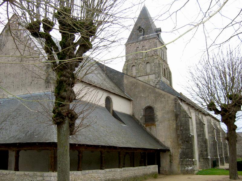 Cette église a vraisemblablement été construite au début du 12e siècle (nef couverte d'une charpente, choeur de trois travées dont l'une est surmontée d'un clocher). Au 16e siècle, elle a été agrandie par l'adjonction au sud de quatre travées d'un collatéral. Une partie des voûtés d'ogives du collatéral a été remplacée par un plafond lambrissé après un incendie. Une galerie formant porche s'élève devant la façade occidentale et le long du mur nord de la nef (jusqu'à la saillie du bas-côté). Cette galerie date de la fin du 15e siècle, ou du 16e siècle. Les poteaux qui la supportent reposent sur un muret de pierre.