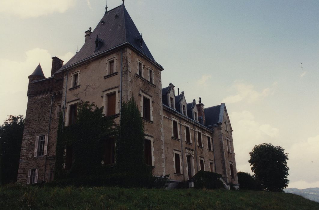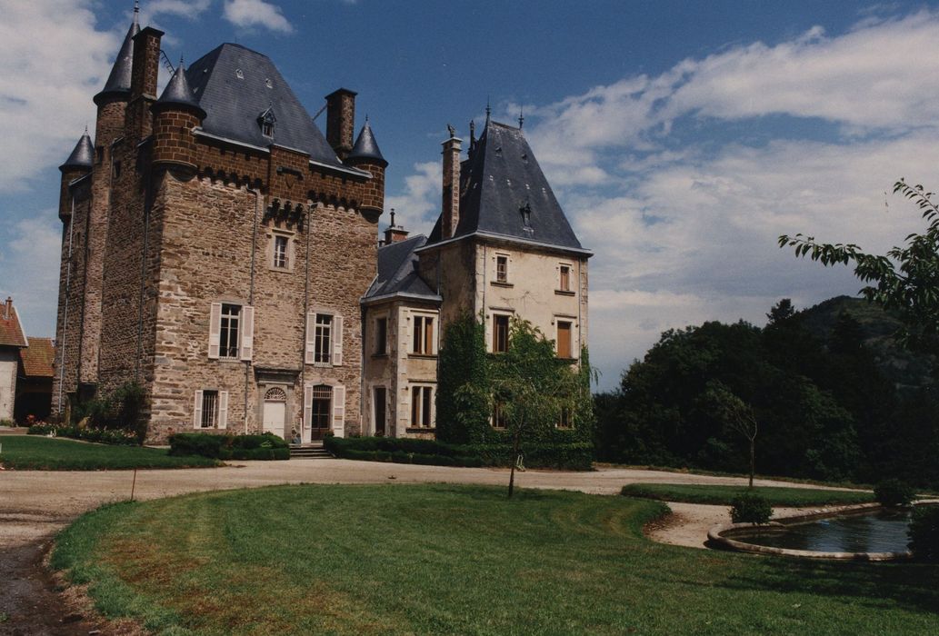 Donjon de la fin du 14e siècle. En 1653, le château passe à la famille Jourda de Vaux qui le possède encore. A la fin du 19e siècle, importante campagne de travaux : remodelage du parc par l'architecte Monnier, démolition des anciens bâtiments en 1893, puis reconstruction du château en 1893-1894 par l'architecte Martin et décor en 1895 par le peintre Mayoli.