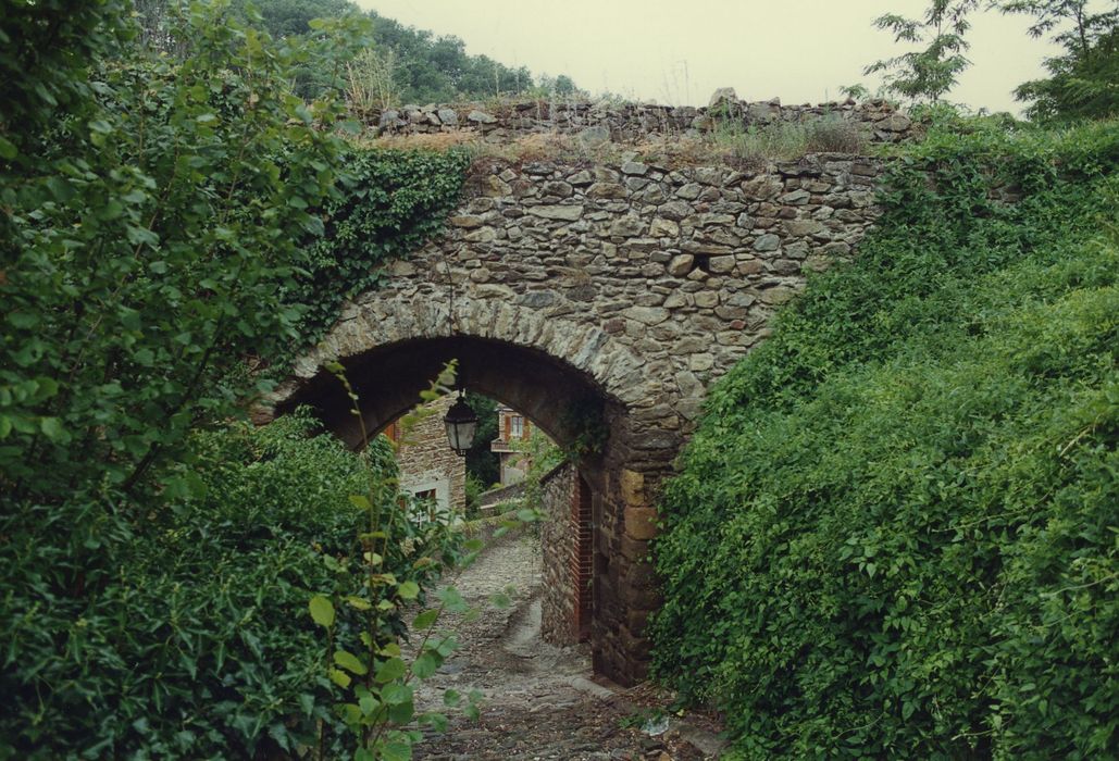 A la fin du 13e siècle, l'ancien castrum avait cédé la place à une ville. Au 15e siècle, à cause des risques d'attaques des routiers, reconstruction d'un mur d'enceinte. Si la ville était bien gardée au nord par le château et le mur d'enceinte, elle était vulnérable côté plaine. Un mur sud fut élevé et défendu par quelques tours et percé d'une porte. La porte fortifiée prit le nom du quartier, le Brugelet. La porte est constituée d'un mur en moellons flanqué sur la partie Est d'une base de tours en encorbellement qui servait à la défendre et à assurer le guet. Le mur est percé d'une ouverture en arc brisé côté sud, tandis que côté nord le passage est plus large et couvert d'un arc surbaissé mais appareillé plus grossièrement.