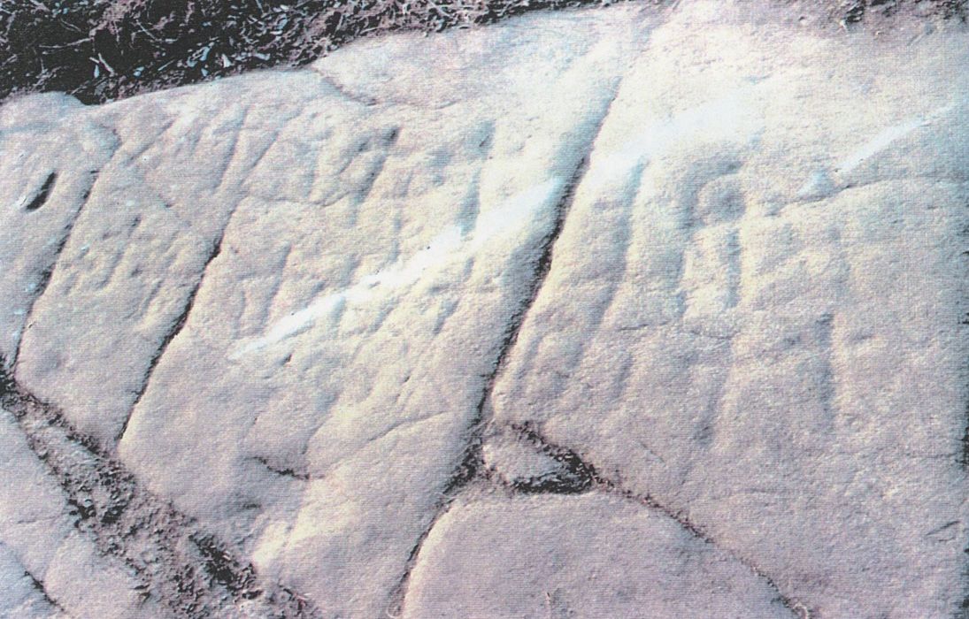 Gravures en creux découvertes en 1870, composées d'une série de croix et de rectangles accolés. Ces gravures ont longtemps été datées de l'Age du Bronze en raison de l'absence de traces d'utilisation d'un percuteur en métal, mais des études récentes montrent que cet absence peut être due à la salinité de l'air. Une christianisation des rochers pourrait être envisagée.