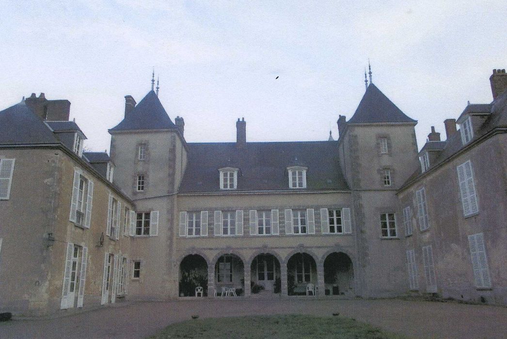Le corps de bâtiment est d'origine médiévale. Il est flanqué de deux tours à bossages conservées sur la façade postérieure du corps de logis principal. A la fin du 16e ou au début du 17e siècle, ajout d'un corps de galerie à arcades et bossages troués un sur deux. Ce corps de galerie est flanqué de tours carrées couvertes en pavillon. Dans la seconde moitié du 18e siècle, construction d'ailes parallèles dans l'alignement des tours carrées, en commençant à l'est par celle qui contient la chapelle. L'aile symétrique a été ajoutée, puis deux ailes en retour d'équerre, entourant la cour d'honneur. L'ensemble, complété par un vaste corps de ferme s'articulant autour de deux cours quadrangulaires, est disposé dans un parc paysager.