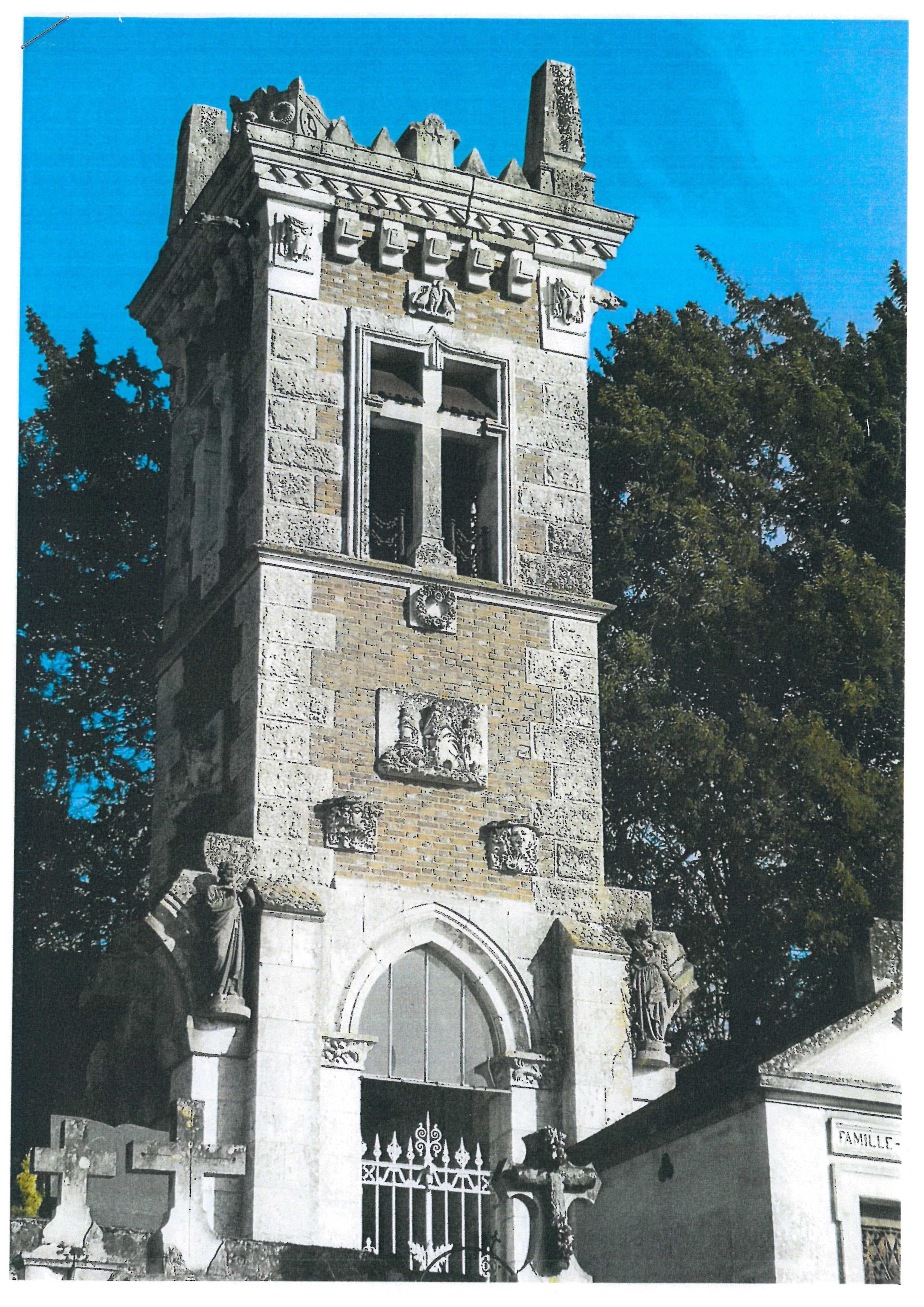 La tour funéraire dite Tour Faffe, conservée dans l’ancien cimetière, en totalité, dans les limites indiquées en rouge sur le plan annexé à l’arrêté. Elle figure au cadastre de la commune, section AE parcelle 53 : inscription par arrêté du 1er juillet 2025