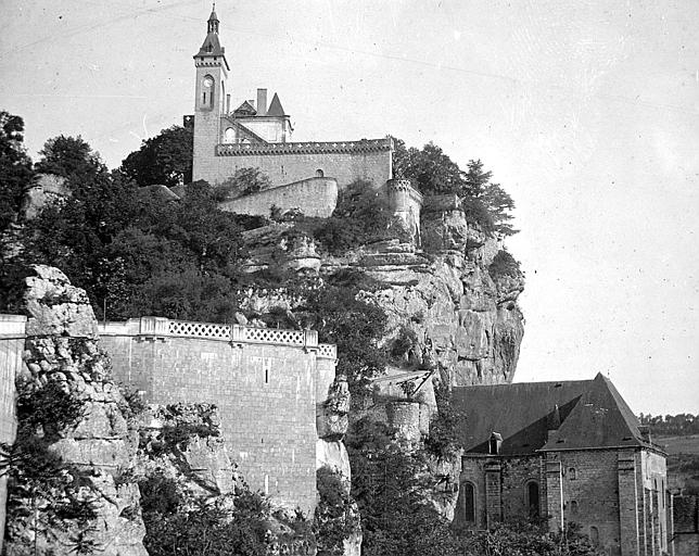 Le renom du pélerinage marial de Rocamadour place cette petite cité du Haut Quercy parmi les sites majeurs du monde chrétien depuis le Moyen Age. En 1105, première mention certaine de l'église Sainte-Marie ou Notre-Dame sur une bulle du pape Pascal II. L'ensemble des bâtiments qui constituent la cité religieuse est construit au 12e siècle (découverte d'un corps "integrum" identifié comme celui de Saint-Amadour) : au milieu du 12e siècle, Notre-Dame, Saint-Michel Saint-Sauveur et Saint-Amadour existent ; en 1223, mention de la salle neuve du palais abbatial. Des reconstructions partielles ponctuent les prises et pillages dont la cité est victime jusqu'au 16e siècle. Réduit à une dimension locale aux 17e et 18e siècles, le pélerinage périclite et les procès-verbaux d'époque révolutionnaire notent l'état ruiniforme des bâtiments. La restauration matérielle du site sera orchestrée par les évêques de Cahors à partir de 1842 et conduite par l'abbé Cheval, à partir du noyau médiéval. Première campagne de restauration de 1858 à 1864 : Saint-Sauveur-Saint-Amadour (1858-1860) , Sainte-Anne (1861-1862) et Notre-Dame (1860-1864) ; Saint-Michel restaurée en 1865, Saint-Blaise vers 1867 ; dernière phase du chantier concernant le palais abbatial, la porterie et Saint-Jean-Baptiste entre 1869 et 1872.