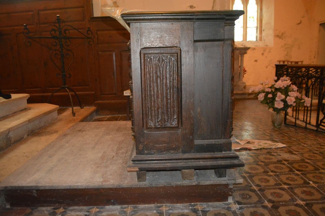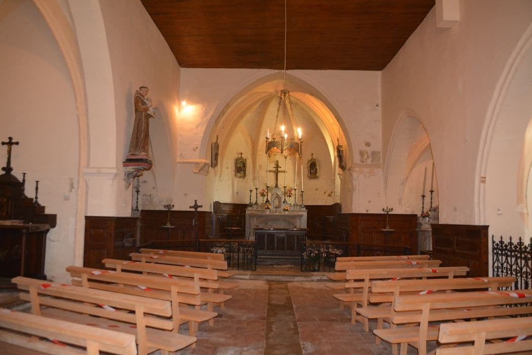Dorigine romane, cet édifice fut modifié et agrandi à la fin du 15e siècle ou début du 16ème. Les vitraux datent du 19ème siècle. A lintérieur, la nef lambrissée ouvre sur un choeur polygonal couvert dune voûte à huit quartiers décorés de culots sculptés et dune clé de voûte figurant un Christ bénissant. Deux quartiers présentent des sculptures en bas-relief : le lion de Marc et le taureau de Luc. Larc triomphal en arc brisé est décoré de chaque côté de frises en pierre représentant deux dragons et un chien datés de la fin du 15ème siècle. Des sondages récents ont révélé la présence de traces de peintures murales.