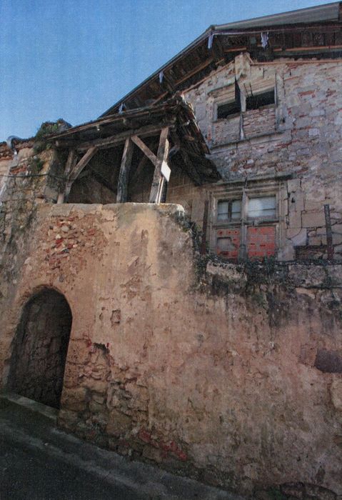 Donnant sur la rue dont elle est séparée par une petite cour fermée par un mur, la façade occidentale est constituée d'un appareillage de pierre et de brique. Elle comporte une porte surmontée d'un arc en plein cintre donnant accès à un passage couvert conduisant au niveau le plus bas de la maison.