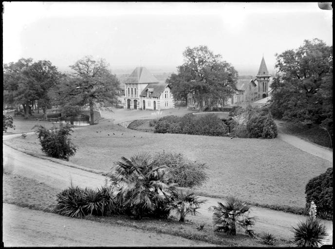 Château du 16e siècle, très remanié. Les communs s'organisent autour d'une cour intérieure enfermant, en son centre, une volière en briques, pierres et ardoises. Ces bâtiments reprennent le style anglo-normand, en particulier avec les colombages peints en façades. La cour intérieure s'organise autour de deux pôles fonctionnels : les écuries et la ferme-modèle. Le parc a été dessiné au 19e siècle.