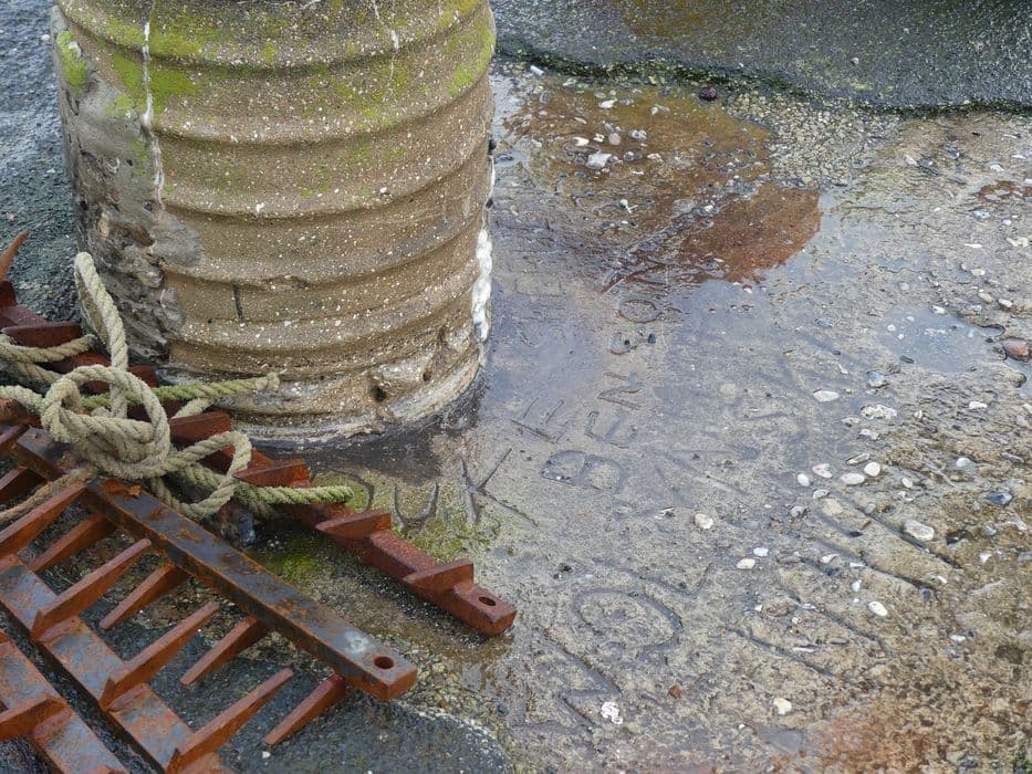 Le port de Barfleur conserve des éléments construits dès juin 1944 par l'armée américaine qui utilisa immédiatement ce petit port de pêche à des fins logistiques. Ceci n'était possible qu'à marée haute, des caboteurs pouvant alors rentrer dans le port pour décharger leur cargaison à même le quai. Pour ce faire, les Américains ont construit six bittes d'amarrage en béton beaucoup plus hautes et larges que celles qui servaient à arrimer les chalutiers jusqu'alors. Au pied de l'une de ces bittes d'amarrage, l'on peut voir un ensemble de noms de soldats américains inscrits dans le béton ainsi qu'un chronographe : "1944".