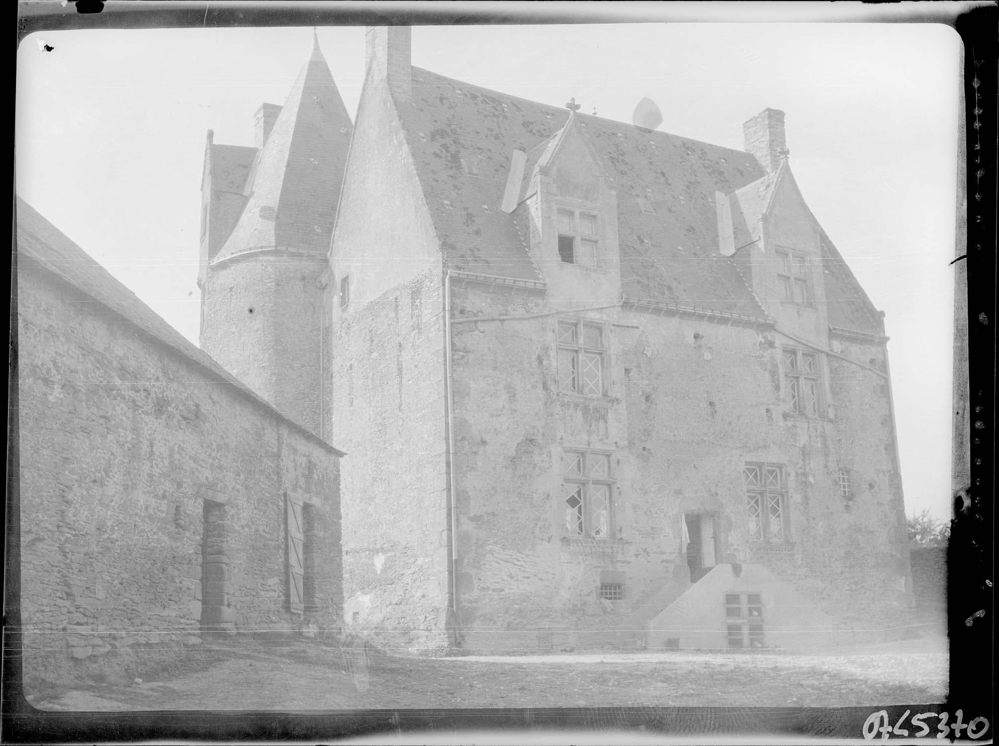 Logis constitué d'éléments d'époques différentes. La tour ronde devait appartenir à une maison forte du 14e siècle ruinée au début du 15e siècle. Le corps de logis principal se divise en une salle seigneuriale chauffée par une cheminée de granit, et une cuisine possèdant une cheminée et une souillarde. L'escalier en vis dessert deux appartements composés chacun de deux pièces, avec des latrines indépendantes. La cloison séparant les deux chambres est ornée d'un ruban qui se déroule le long de la poutre, formant des cartouches géométriques. Dans ces cartouches, ont été peints des bouquets de fleurs ou des paysages avec architectures, caractéristiques du 17e siècle. Le domaine fut saisi et vendu en 1689.