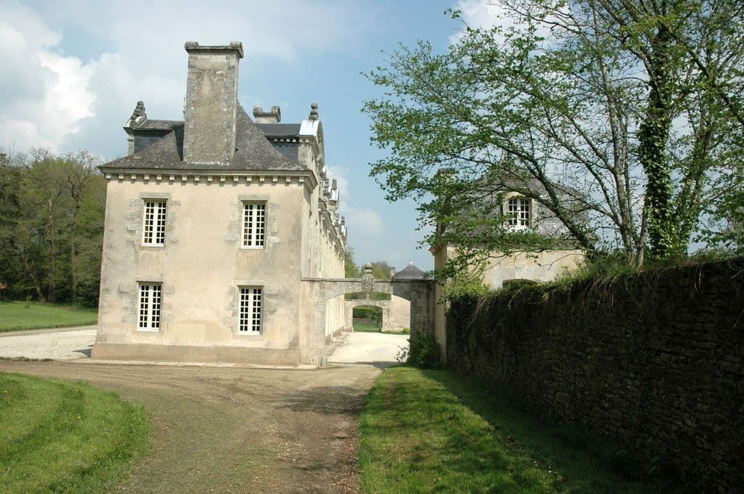 La seigneurie est attestée au 16e siècle. A l'origine, le domaine se composait d'une grande maison avec, de chaque côté, des dépendances. L'entrée était limitée par deux piliers en granit sur un pont surmontant les douves. A l'intérieur, les pièces étaient établies en enfilade. Ce manoir correspondait aux reprises des 17-18e siècles d'un logis fortifié du 15e siècle dont subsiste la tour octogonale et un escalier à vis intérieur. La construction des communs date de 1775. Entre 1896 et 1900, l'ensemble est transformé en un domaine de style classique. L'élévation antérieure est complètement recomposée. Une aile nord est ajoutée. Un pavillon saillant rectangulaire est ajouté à l'élévation postérieure ouest, auquel est accolé dans l'angle intérieur nord une tourelle de latrines. Une galerie fermée relie l'aile nord et la tourelle d'escalier du 15e siècle. Deux pavillons sont construits au nord et au sud, reliés à l'édifice par une porte qui ferme la cour et dans le prolongement desquels s'établissent les deux ailes de communs recomposés. Création d'un jardin à la française dans la cour d'honneur. Le décor intérieur comprend lambris, plafond peint, cheminée monumentale... Le remaniement de ce domaine illustre un type de restauration visant à monumentaliser un édifice existant par un agrandissement symétrique et une composition générale s'inspirant de l'architecture du 17e siècle.