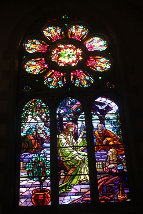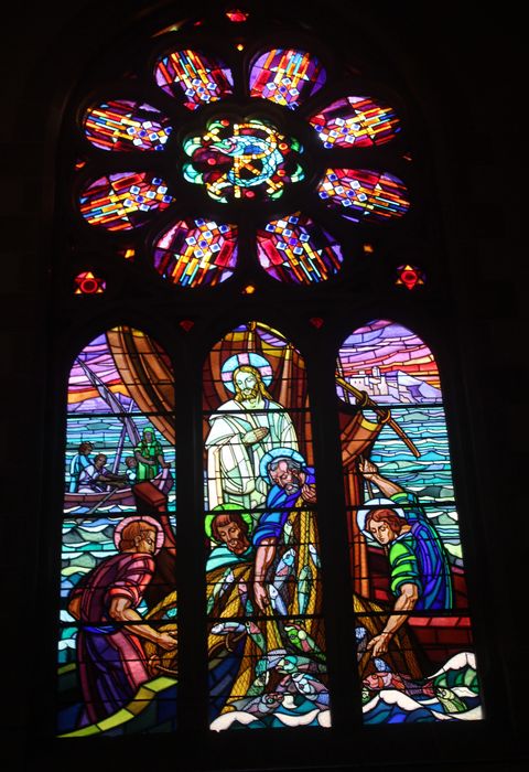 Le chanoine Abgrall réalise en 1905 une église en schiste et granite. Aucun décor intérieur n'est réalisé et les baies sont dépourvues de vitraux. Le nouveau curé Abel-Ange Rio en 1922 souhaite achever l'aménagement et fait appel à l'atelier des frères Mauméjean.