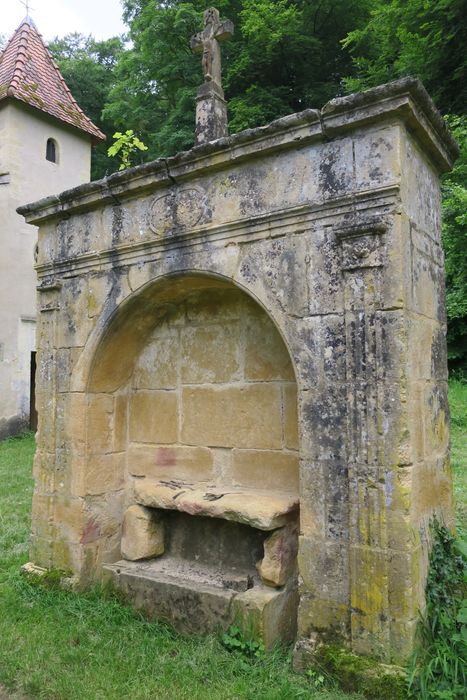 Eléments en relation avec l'abbaye bénédictine. Oratoire érigé en 1582, chapelle Saint-Clément entre 1596 et 1603. En 1607, érection d'une croix dite Croix aux Loups.