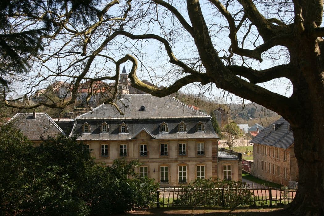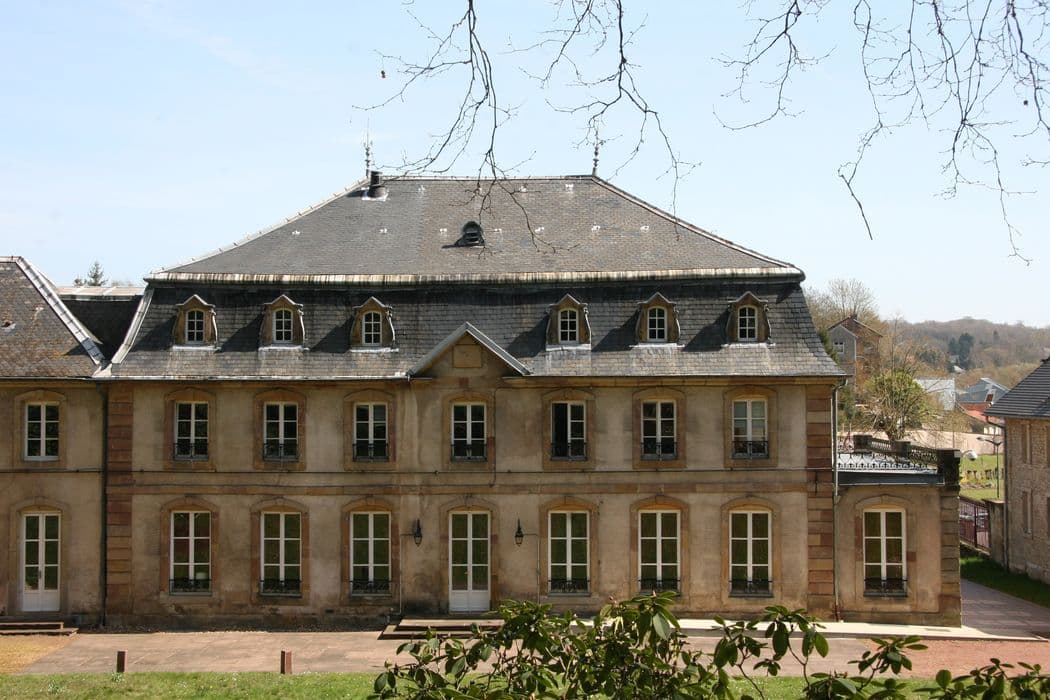 "A partir de l'autorisation obtenue en 1758 d'établir une forge à Hombourg, Charles de Wendel développe une activité industrielle au bord de la Rosselle, au pied du vieux village de Hombourg. Il fait construire vers 1762 à proximité de la forge, un château qui ressemble probablement beaucoup au château actuel, à l'exception des petites ailes nord et sud. En 1808, le château devient la propriété d'Ignace d'Hausen, neveu de la veuve de Charles de Wendel. Le plan cadastral de 1836 permet de comprendre la physionomie du domaine qui a peu changé jusqu'à aujourd'hui : le château, les communs, et le jardin dit « jardin d'agrément ».