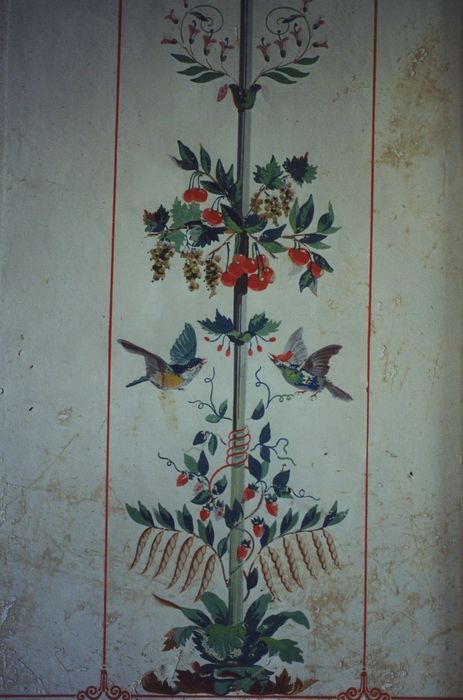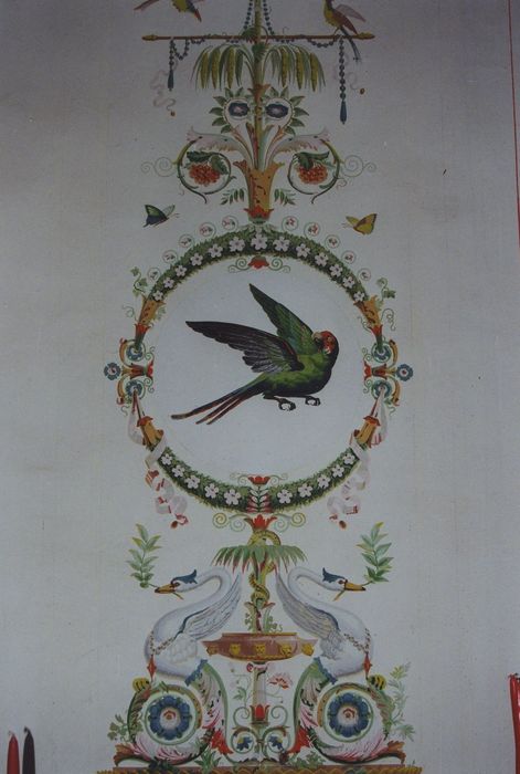 Château reconstruit en 1776 à l'emplacement d'un site médiéval. Ajout d'un étage supplémentaire à la fin du 19e siècle par l'architecte Bouveault. Au rez-de-chaussée, un salon est orné d'un papier peint en arabesque, avec décor floral et animalier, de la manufacture de la Veuve Mader (1831). Les communs ont gardé leurs dispositions.