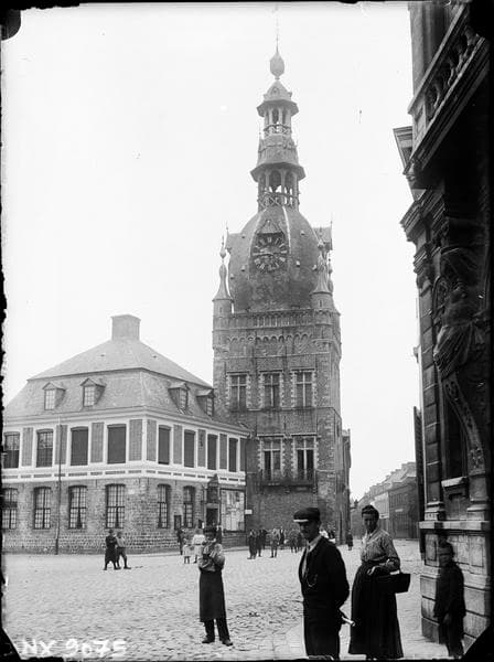 Hauts-de-France ; Nord (59) ; Comines ; Grand'Place ; rue du Maréchal-Foch ; rue du Pont ; rue de la République