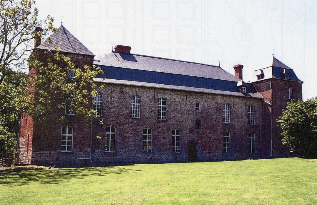 Le nom d'Obies est mentionné pour la première fois en 1065. Un château existait dès 1303. Des transformations sont réalisées dans les années 1770. En 1900, le bien est vendu et la réfection de la toiture intervient à cette époque. Durant la première moitié du 20ème siècle, le château fut successivement transformé en casernement, en colonie de vacances et en «estaminet». Les renseignements historiques lacunaires rendent difficile l'élaboration d'un descriptif précis du bâti. Seules quelques dates inscrites dans la maçonnerie et une analyse architecturale permettent d'établir certains repères. Ainsi, une maison forte semble avoir été édifiée à une date inconnue (vestiges sur le côté est de la façade sud). La porte basse en plein cintre, au centre de la façade sud, paraît remonter au 17ème siècle. La maison forte se mue en maison de campagne probablement dans le dernier tiers du 18ème siècle où de grandes baies sont percées sur les deux façades et les tours. La véranda sur la façade nord est à situer après 1900. Le château d'Obies se présente comme une grosse habitation de campagne aux allures fortifiées, caractéristique de l'architecture du sud du département avec son utilisation de la brique et de la pierre bleue.