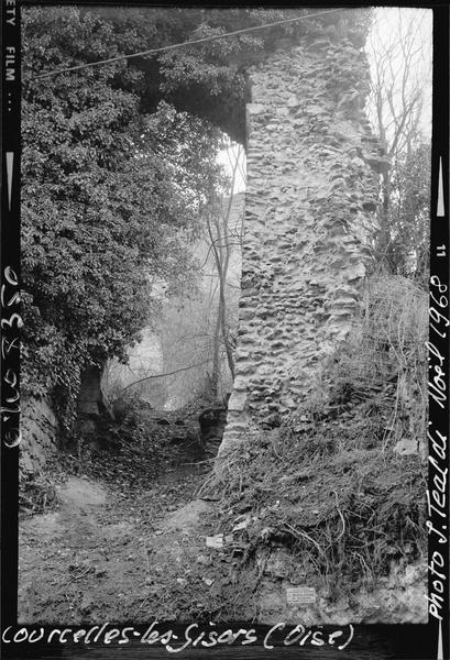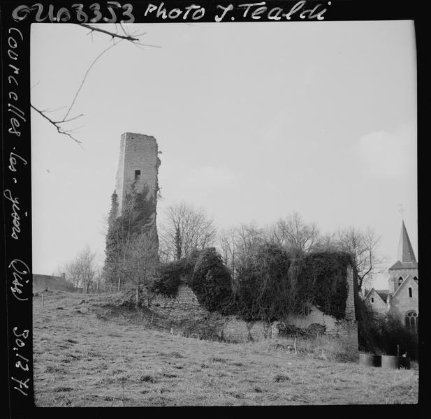 A la suite du pillage du Vexin français par Guillaume le Conquérant en 1087, le roi de France décida l'établissement d'une ligne défensive de châteaux forts tout au long de la frontière entre Vexin français et Vexin normand. Vers 1098, fut édifiée la place forte de Courcelles-lès-Gisors composée d'un donjon quadrangulaire et de sa chemise. Elle entra dans l'histoire lors de sa prise, en 1198, par Richard Coeur de Lion qui cherchait à reconquérir la forteresse de Gisors, alors aux mains de Philippe II, roi de France. Cette prise fut la cause de la célèbre bataille de Courcelles qui opposa les deux souverains. Richard mit son adversaire en débâcle, mais Philippe II put rejoindre Gisors et, à la suite de ces événements, une trêve fut conclue. Du donjon subsiste le mur sud-est, sur trois niveaux ; la plus grande partie de la chemise, bien que très endommagée, demeure en élévation, en particulier le porche voûté qui donnait accès à l'enceinte castrale. Les ruines sont situées sur un escarpement naturel et dominent la vallée de l'Epte. Elles sont incluses dans le périmètre de protection de l'église de Courcelles-lès-Gisors (Inscrite à l'Inventaire Supplémentaire des Monuments Historiques). Par ailleurs, la partie du Vexin située dans l'Oise est inscrite au titre des sites depuis 1974, par un arrêté complétant celui du 19 juin 1972 inscrivant sur l'inventaire des sites la partie du Vexin français située dans les départements du Val-d'Oise et des Yvelines.