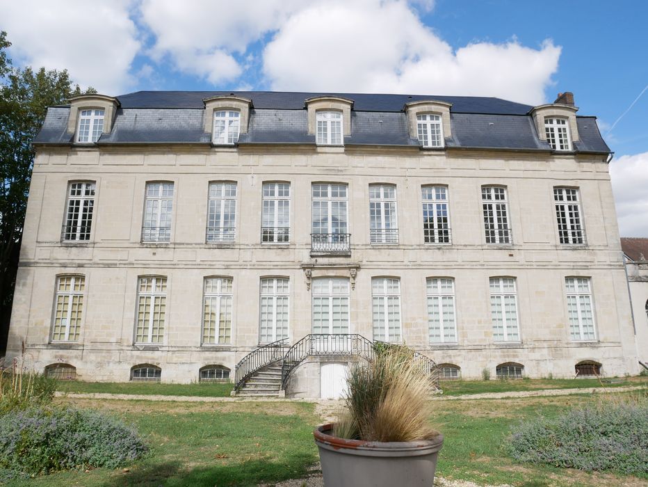 L'hôtel particulier de la rue Bellon a été construit vers 1705 pour Dame Marie de Saint Gobert, veuve d'Antoine Grondeau, écuyer, conseiller et secrétaire du Roi. Il s'agit d'un hôtel entre cour et jardin d'une grande sobriété classique, qui se caractérise en élévation par la symétrie de la structure, la rigueur des lignes et la discrétion des éléments de décor propre à la « manière simple » qui prédomine à la fin de règne de Louis XIV. Suite au percement de la rue de la République sur le flanc ouest de l'hôtel, la nouvelle propriétaire Marie Anne Catherine de Saint Leu, veuve de Nicolas Dufresne, avocat en Parlement, conseiller du roi, élu en l'élection de Senlis et subdélégué de l'intendance de la généralité de Paris, fait l'acquisition de parcelles voisines en 1754. Elle accroit ainsi le jardin et l'aménage en un vaste parc arboré en cœur de ville. L'hôtel connait de profondes transformations dans sa distribution intérieure au cours du XXe siècle, étant successivement école de fille, tribunal de Grande Instance et de Commerce puis centre social du Conseil départemental. Le jardin va quant à lui être partiellement transformé pour créer des emplacements de stationnement public.