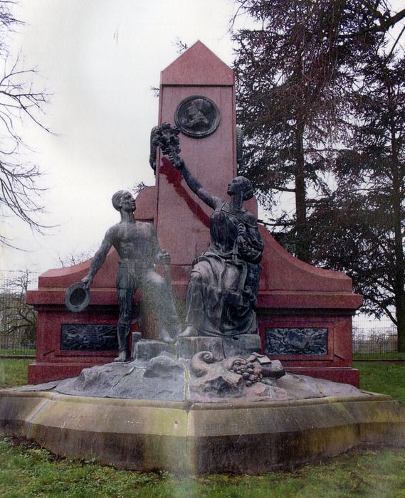 Le monument a été inauguré une première fois en 1913 puis fut reconstruit en 1932, après la Grande Guerre, sous le même aspect et avec des matériaux identiques. Il était destiné à honorer la générosité de la Châtelaine ainsi qu'à célébrer la découverte, à son initiative, du charbon dans le parc de son domaine, en 1841. A l'origine, les sculptures furent réalisées par le sculpteur Charles Caby et refondues sur ces modèles initiaux lors de sa restauration avant d'être une nouvelle fois inauguré en juillet 1932.