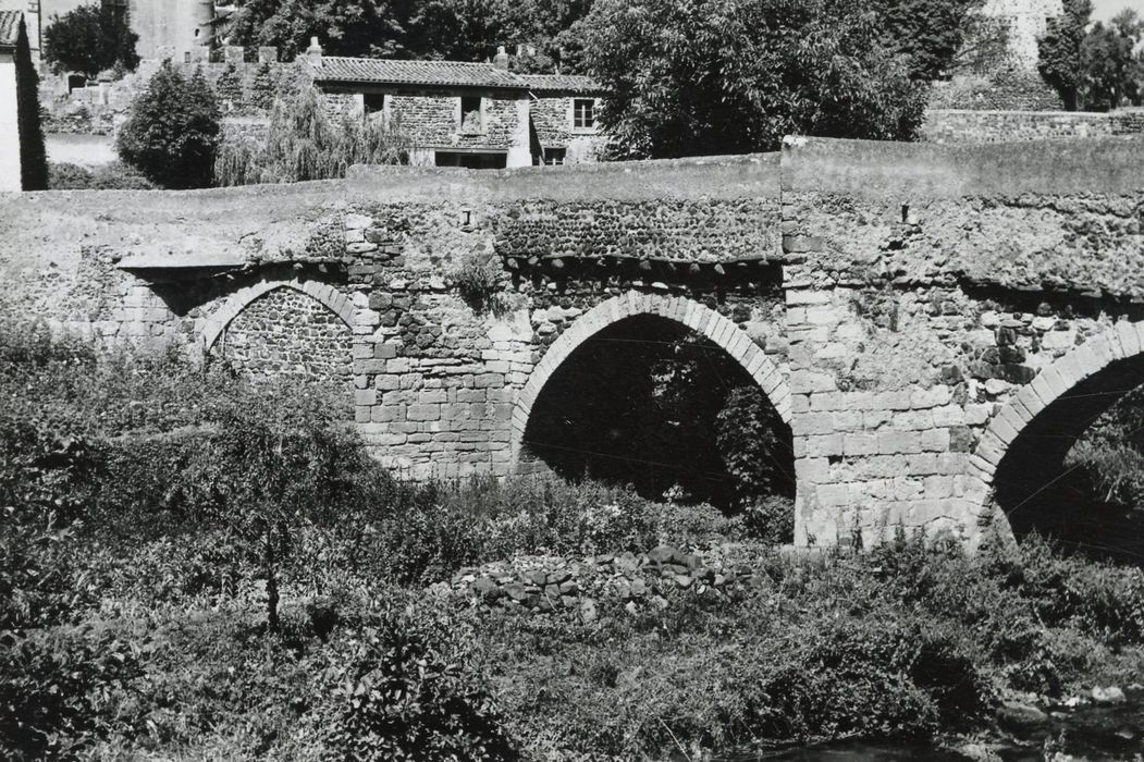 Pont construit probablement au 13e siècle. Il constitue l'un des exemples les plus remarquables de ce type d'ouvrage d'art en Basse-Auvergne. L'ouvrage est représenté sur un dessin du milieu du 15e siècle, époque à laquelle les remparts étaient en cours de reconstruction et d'agrandissement. Ce pont desservait l'une des portes principales de la ville. Il se compose de quatre arches en arc brisé qui pourraient remonter au 13e siècle. Quatre piles à bec épaulent les quatre arches, ménageant des refuges délimités par les parapets. Le tablier est construit en léger surplomb, porté par des corbeaux en quart de rond renversés.