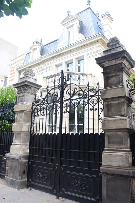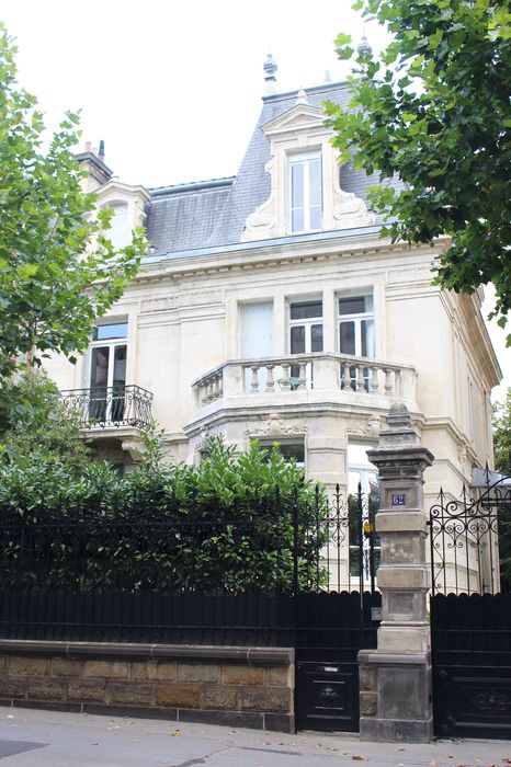 Villa de style néo-classique s'élevant sur deux étages plus un étage de combles, surmontée de toitures à brisis. Structure en pierre avec un décor constitué d'agrafes à cartouches, d'une frise de palmettes sous la corniche du toit et d'un masque sculpté ornant la façade latérale. La façade sur rue se distingue par un avant-corps dont le toit forme une terrasse au premier étage avec balustrade en pierre.