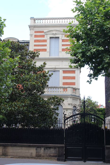 Villa en brique et en pierre dont l'originalité du décor est constituée par l'alternance de bandeaux de pierre et de brique. Toiture à terrasse.