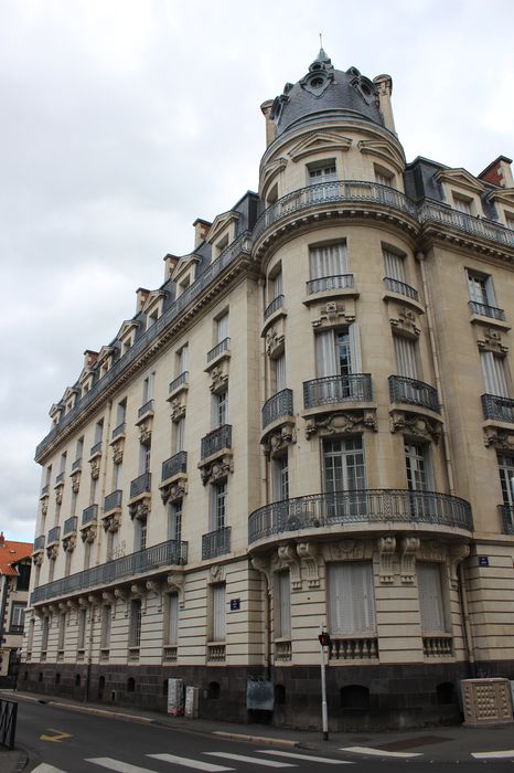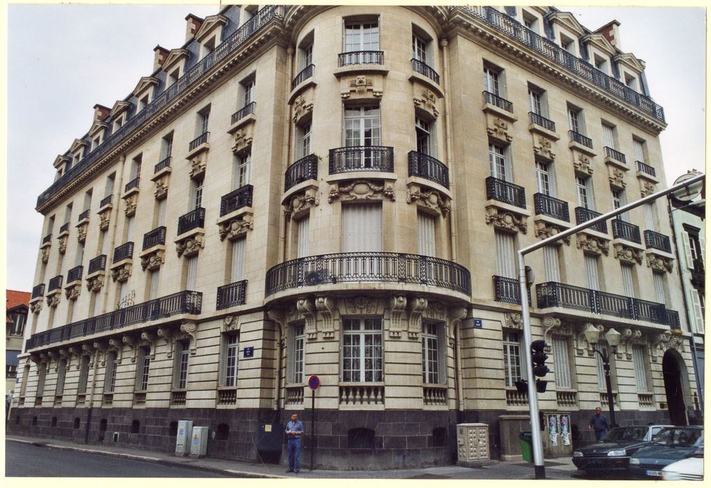 Immeuble de rapport néo-haussmanien, commandé en 1903 à l'architecte Emile Chassaigne. De style Beaux-arts néo-Louis XVI, il suit le modèle de l'immeuble bourgeois parisien, avec son balcon continu le long du dernier niveau, et sa tourelle d'angle sous coupole. Un passage d'entrée couvert dessert une cour intérieure qui possède deux cages d'escalier : une cage dans-oeuvre avec des baies rampantes ; une cage hors-oeuvre à toit terrasse, ayant la particularité de contenir deux escaliers côte-à-côte, l'un d'honneur avec un ascenseur, l'autre de service.