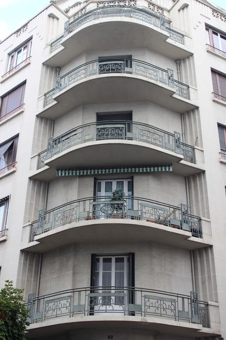 Copropriétés réalisées de 1928 à 1933 par l'architecte Marius Lanquette, réalisées en style Art Déco. Une armature métallique maintient la cohésion des façades en pierre de ces immeubles de huit niveaux, animés de ressauts, loggia, balcons et terrasses. Le registre décoratif de cette époque est largement représenté : pilastres colossaux cannelés, fleurs stylisées, angles carrés, balustrades, colonnades, ferroneries, menuiseries.