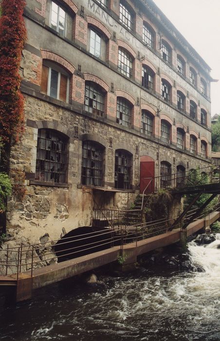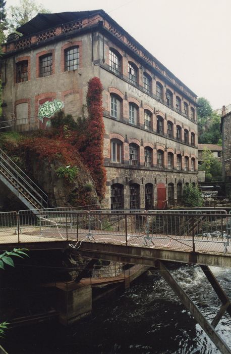 Usine édifiée en 1895, représentative des constructions à usage locatif utilisées par les entreprises familiales. Une passerelle surplombant la Durolle permet d'accéder à l'usine. Un escalier métallique et un monte-charge desservent l'intérieur. Les quatre niveaux sont découpés en ateliers de différentes surfaces, séparés par des cloisons en bois ou en brique creuse. A chaque étage, des arbres de transmission équipés de poulies traversent les ateliers. Ils sont mis en mouvement par des courroies partant de la turbine hydraulique installée sous le bâtiment.