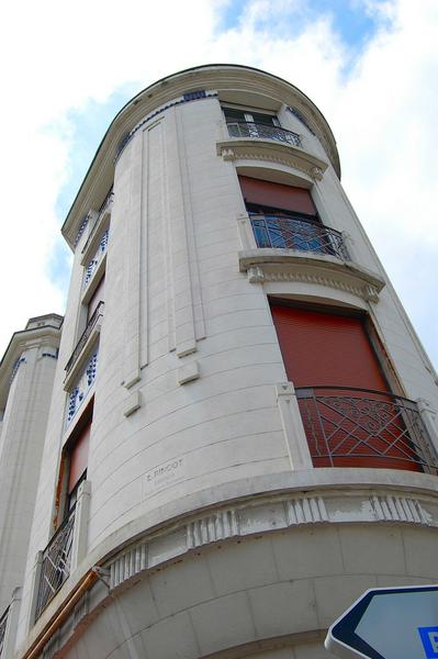 Cet immeuble construit en 1933 par l'architecte Ernest Pincot constitue une des réalisations les plus abouties du style Art Déco en Auvergne. Erigé sur une étroite parcelle triangulaire très pentue, il développe au-dessous d'un soubassement des façades en surplomb et à ressauts. Le traitement de l'angle en arrondi ainsi que la hauteur et l'étroitesse des baies soulignées par des moulures verticales sur les angles, donnent à l'immeuble beaucoup d'élégance et de légèreté. Toiture en terrasse soulignée par un garde-corps en béton ajouré et incrustations de céramique à motifs géométriques