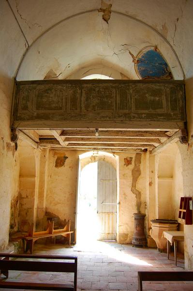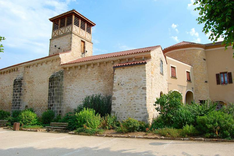 A l'origine chapelle castrale, cette église romane reliée à l'ancien château par un passage voûté, semble avoir été élevée à la fin du 11e ou au début du 12e siècle. Composée d'une nef aveugle, elle a été agrandie et doublée sans doute à la fin du 12e siècle par l'adjonction de deux travées constituant un chœur et un avant chœur de style roman. Au début du 14e siècle a été ajouté un décor peint qui semble revêtir l'ensemble des parois. Décors géométriques et floraux dans le chœur. Alignement de saints dans la nef
