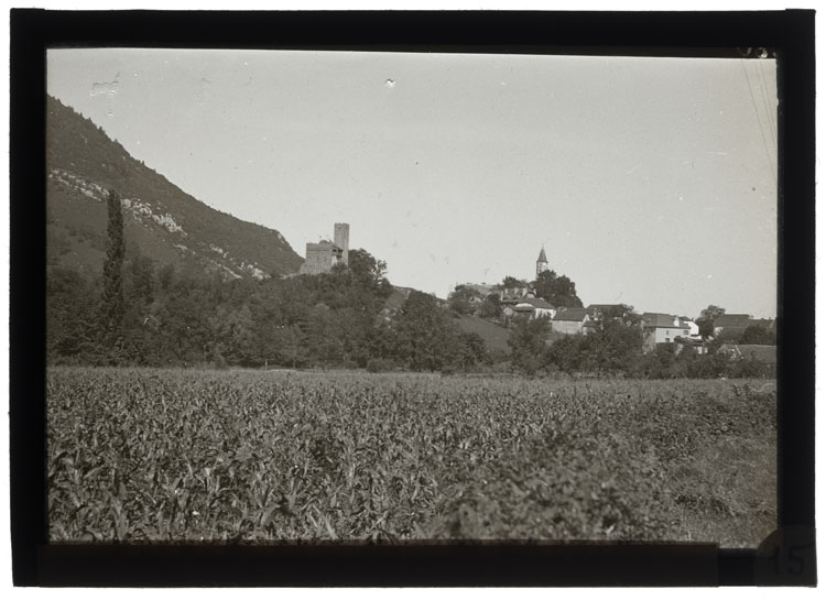 Ancienne église castrale (l'enceinte la relie au château). Eglise d'origine romane (abside du 11e siècle) , profondément remaniée du 15e au 17e siècle. Clocher surhaussé en 1861. Au cours du 18e siècle, l'église a reçu l'essentiel du décor (retables, statues) que l'on voit aujourd'hui.