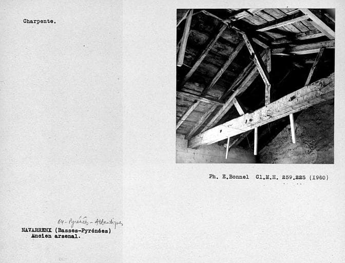 Construit vers 1680, cet ensemble comporte trois corps de bâtiments en U, à trois étages, disposés autour d'une cour centrale. L'édifice a réutilisé les murs de l'ancienne maison des rois de Navarre (traces de portes et de fenêtres du 15e ou 16e siècle). L'arsenal pouvait abriter une quantité considérable d'armes et de munitions.