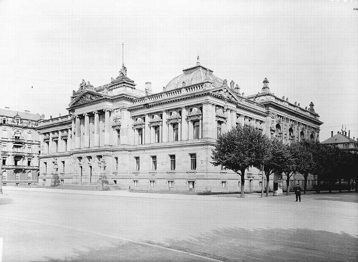 Bibliothèque élevée entre 1889 et 1894 pour compenser la démolition de la bibliothèque municipale de Strasbourg, bombardée en 1870. Elevée par les architectes Hartel et Neckelmann qui construisent également le Palais de la Diète, sur la même Kaiserplatz.