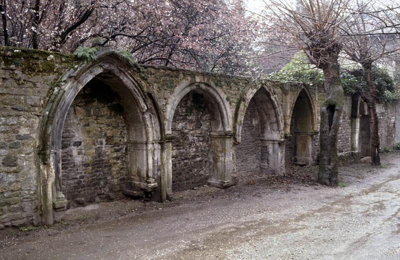 L'abbaye de l'Île-Barbe a été sécularisée en 1551. L'île accueille alors de nombreux pèlerins et tout le nord de l'île était dévolu aux bâtiments monastiques, notamment le cloître dont l'emplacement est très bien identifié, en relation avec la salle du chapitre, l'église abbatiale et le réfectoire des moines. De cet ensemble architectural, connu par des représentations de l'époque, ne reste quasiment rien aujourd'hui , la grande église ayant été démantelée après la Révolution. Un important vestige du cloître disparu a cependant pu être identifié grâce aux études archéologiques menées en 2011-2012 : la porte romane avec tympan historié, a ainsi été retrouvée sur son emplacement d'origine. Seule ouverture pratiquée dans une portion de mur d'environ 30 mètres, elle permettait de passer du bras sud du cloître à l'espace qui servait de réfectoire aux moines, ce mur servant également d'appui à la charpente qui protégeait ce couloir de circulation du cloître, devenu mur de clôture de la Prévôté sur l'impasse Saint-Loup.
