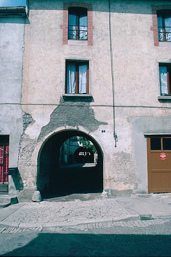 Bâtiments des halles reconstruits vers 1700 sur les plans de Dom Vincent Duchesne, architecte de l'abbaye bénédictine, puis à nouveau dans la seconde moitié du 18e siècle. L'ensemble a été découpé en garages et appartements, mais conserve des façades sur cour à arcades.