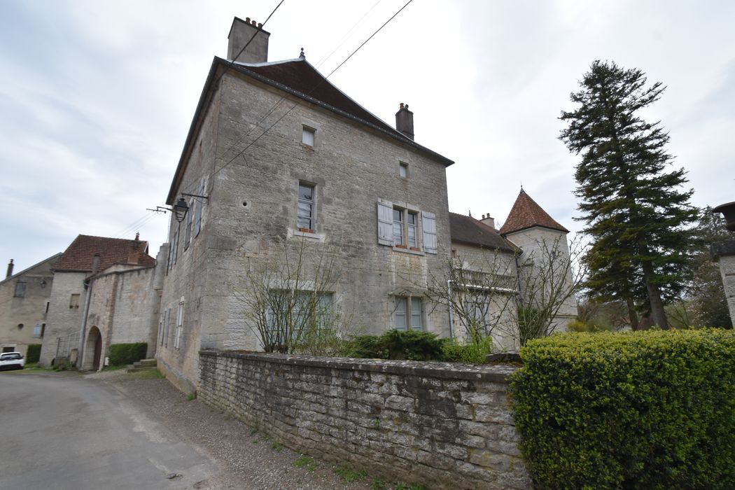 Maison (appelée " la grosse maison " jusqu'à la Révolution) construite vers 1567 par Léonard Rousselot et composée de quatre ailes entourant une cour carrée. Le logis, comprenant deux corps de bâtiments, occupe l'aile nord, les autres ailes correspondant à des dépendances agricoles. Au rez-de-chaussée du logis, subsiste une galerie ouverte par quatre arcades en pierre. A l'intérieur, outre la cuisine entièrement voûtée sur croisée d'ogives, se trouvent plusieurs cheminées des 16e, 17e et 18e siècles. L'édifice a conservé l'essentiel de sa volumétrie extérieure et de sa disposition intérieure.