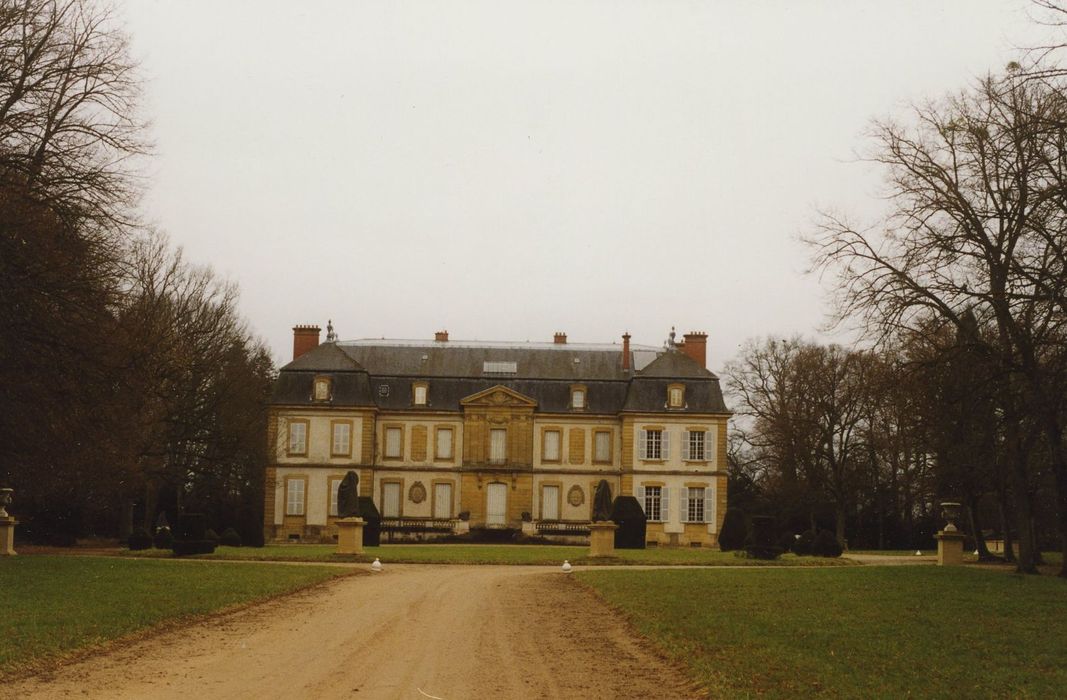 Château ; dépendances ; ferme ; pavillons, portail, y compris la demi-lune d'entrée nord et la statue de Flore et l'Amour ; jardins, y compris les balustrades, les statues et les vases d'ornement, la serre, le jardin potager et ses portails, les sols, les murs de clôture (cad. BX 7 à 28) : inscription par arrêté du 7 décembre 1999