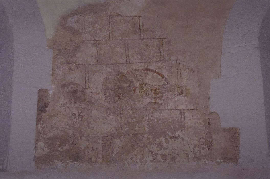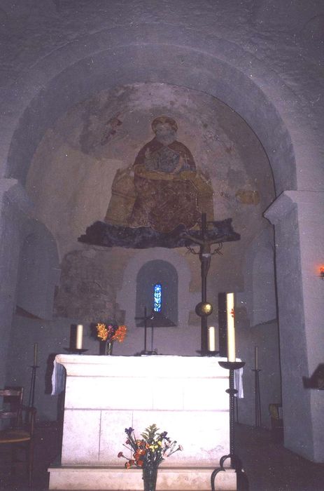 Edifice en croix latine, orienté, avec choeur bâti au 12e siècle, formé d'une abside semi-circulaire voûtée en cul de four et transept. La nef d'un seul vaisseau a été bâtie à la fin du 17e siècle. Dans le choeur, présence de peintures murales : Christ en majesté et tétramorphe ; Christ en gloire avec saint Christophe, saint Pierre et saint Paul ; Jugement dernier et saint Hubert.